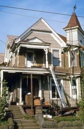 Thaddeus Fisher House under restoration by Ben & Jerry in 1975.